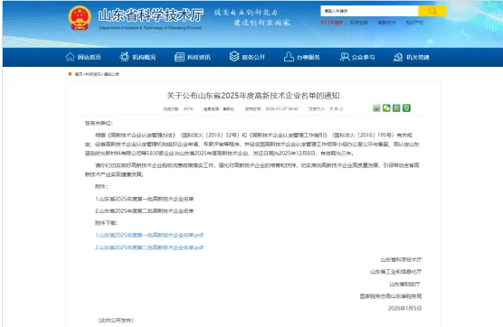 日前,山东省科学技术厅发布2025年度高新技术企业认定公示结果,国舜绿建科技有限公司(以下简称“国舜绿建”)凭借扎实的技术创新实力、丰硕的研发成果及卓越的产业转化能力,成功上榜山东省2025年度第一批高新技术企业名单。